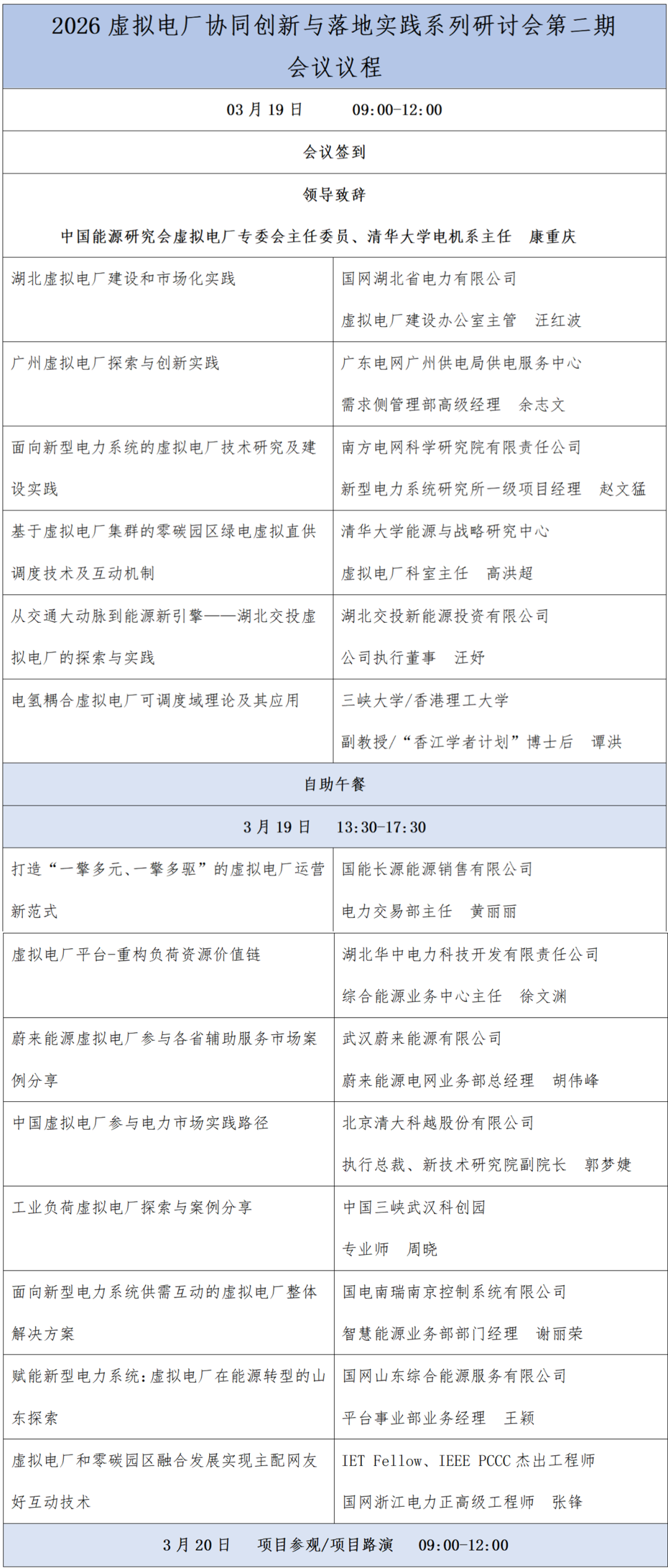 国家发改委等相关政府部门;两大电网公司及各网省电力公司;发电集团;电力设计院、相关科研院所;综合能源服务公司;新能源企业(风电、光伏、储能、充电桩等);虚拟电厂聚合商;AI与大数据企业;碳交易市场主体新能源项目投资商;设备商、投融资公司及电力辅助市场用户;网络通信、信息安全服务企业、电力终端厂商;想了解虚拟电厂商业运营模式的各类参会人员。