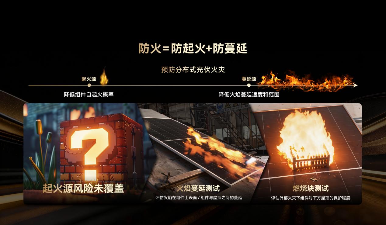 解决了组件自身起火,另一个关键问题是:如果别处起火,组件会不会成为“助燃物”?