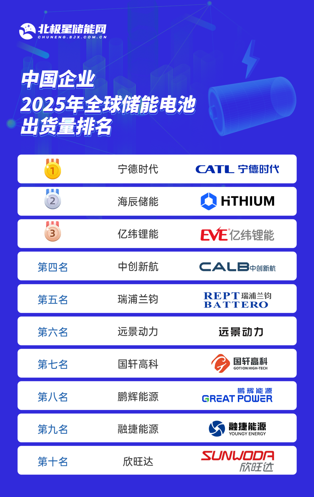 7.本次排名仅以2025年度储能出货量为单一口径进行排序,不作为企业技术实力、产品质量、市场竞争力等其他维度的评价依据,未纳入本次排名的企业,不代表其技术水平或市场地位逊色。