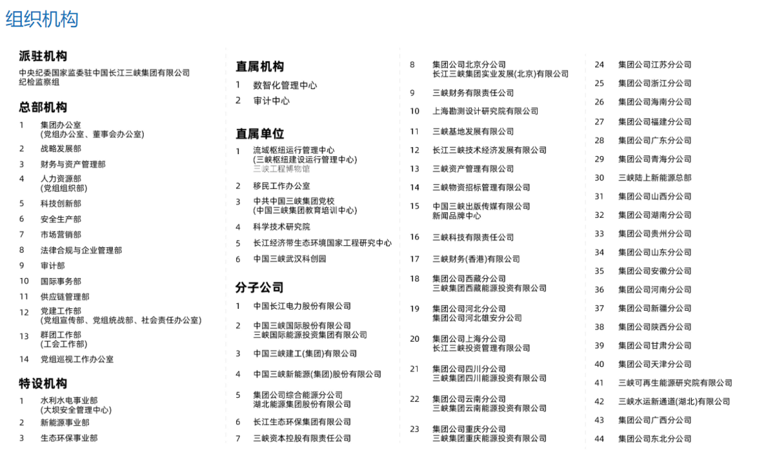 4、区域布局:在分子公司层面,新增了“集团公司东北分公司”,以完善区域布局。同时,“三峡水运新通道有限公司”更名为“三峡水运新通道 (湖北) 有限公司”