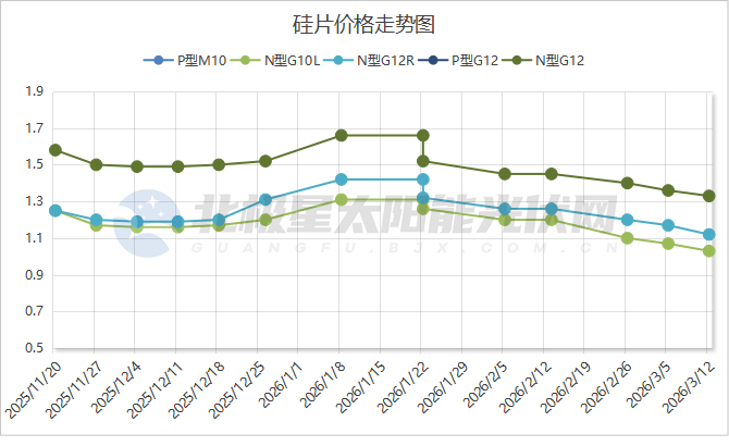 3月12日,硅业分会发布最新价格,本周硅片价格持续下跌,其中最大跌幅达到4.27%。