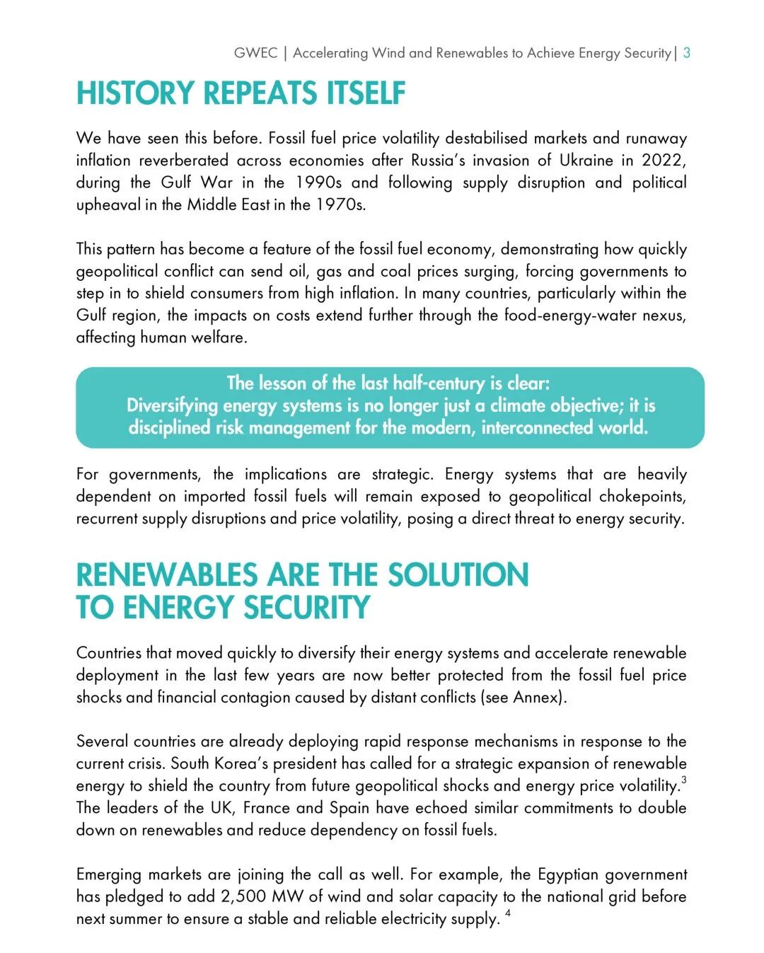 GWEC指出,风能作为一种无限、本土、可扩展的能源,是实现能源多元化和主权、摆脱化石燃料价格冲击和地缘政治风险的关键。