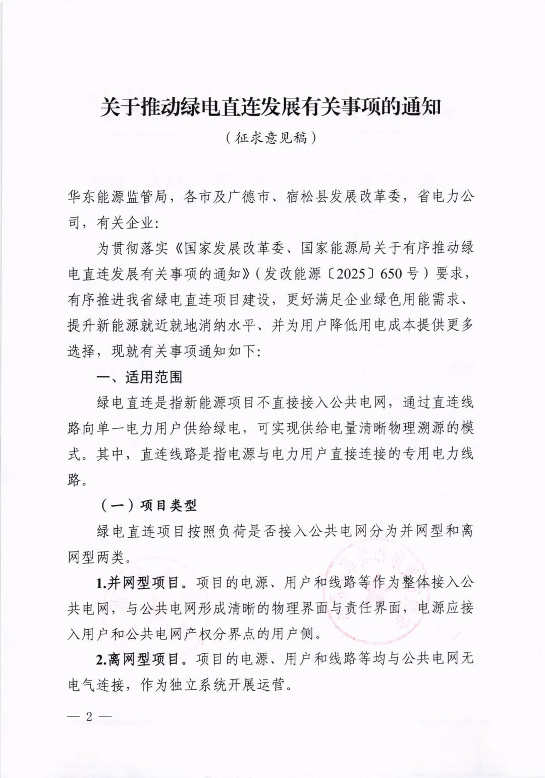 原标题:关于公开征求推动绿电直连发展有关事项通知(征求意见稿)意见的公告