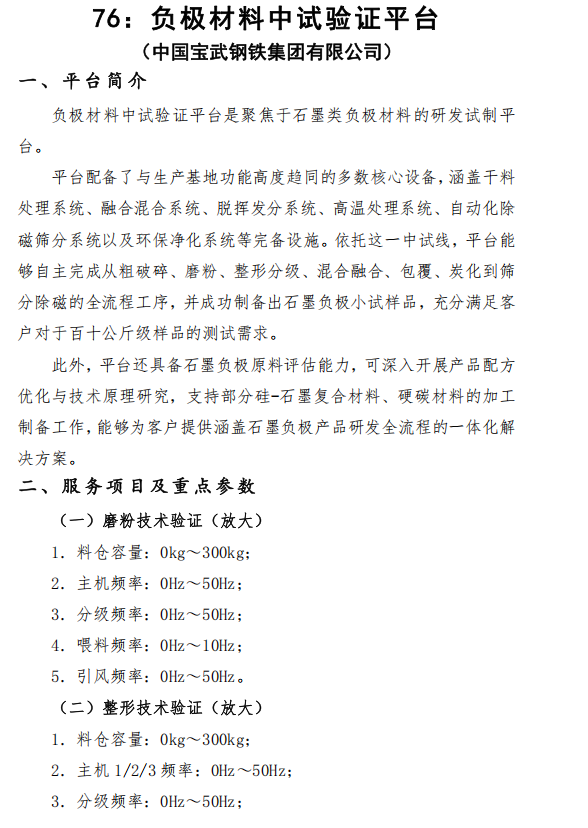 北极星储能网讯:9月17日,国务院国资委发布《中央企业中试验证平台对外开放服务手册(2025年版)》。其中包括负极材料中试验证平台(中国宝武钢铁集团有限公司)、锂离子电池材料及电池制备中试验证平台(中国五矿集团有限公司)、压缩空气储能用新型熔盐中试验证平台(中国能源建设集团有限公司)。