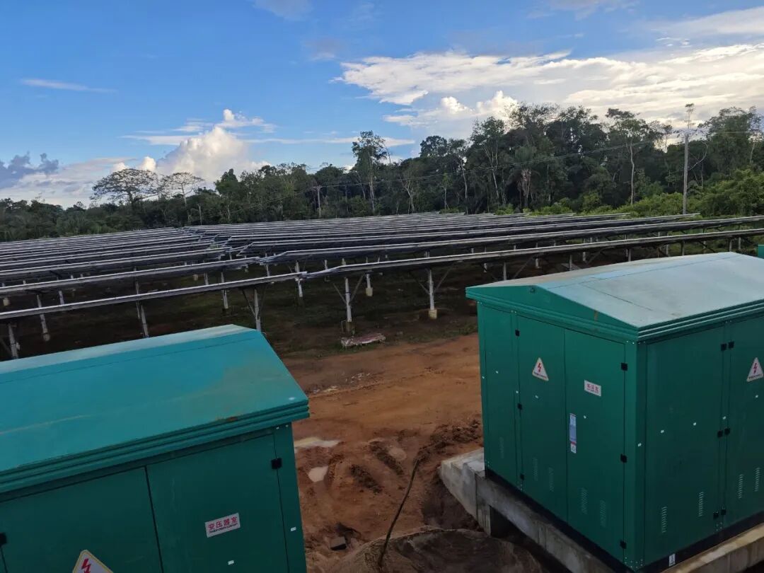 苏里南共和国位于南美洲东北部,长期面临电力基础设施薄弱的挑战,随着当地发展,用电需求逐年攀升,偏远地区的能源短板尤为突出。项目投运前,当地长期依靠从外界运进的柴油进行发电,供电时段仅限晚6时至11时且成本高昂,严重制约居民生活品质与区域发展,但困境中亦含转型机遇:苏里南太阳能资源禀赋优异,同时当地政府正积极推进能源结构转型,大力支持离网型微电网项目落地。基于当地实际需求与资源优势,东方日升与中国电建精准对接,共同为苏里南量身打造了光储柴一体化混合微电网解决方案。