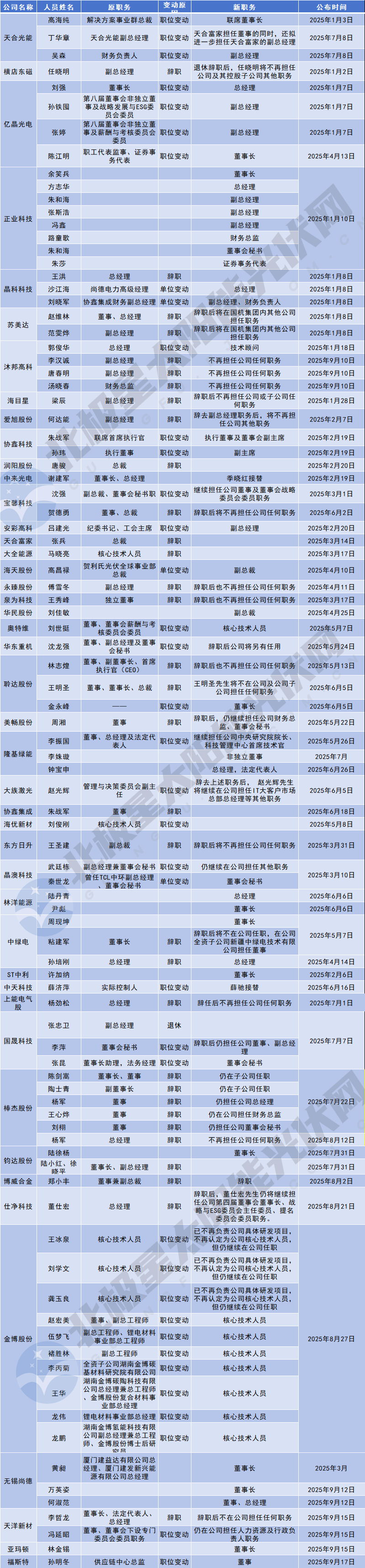 此外,作为企业研发竞争的 “底气”,核心技术人才的流动也是行业关注的焦点。今年以来,大全能源、金博股份、海优新材等企业相继公布核心技术人员变动,既有骨干离职,也有新生力量被认定,“新旧交替” 成为一大特点。
