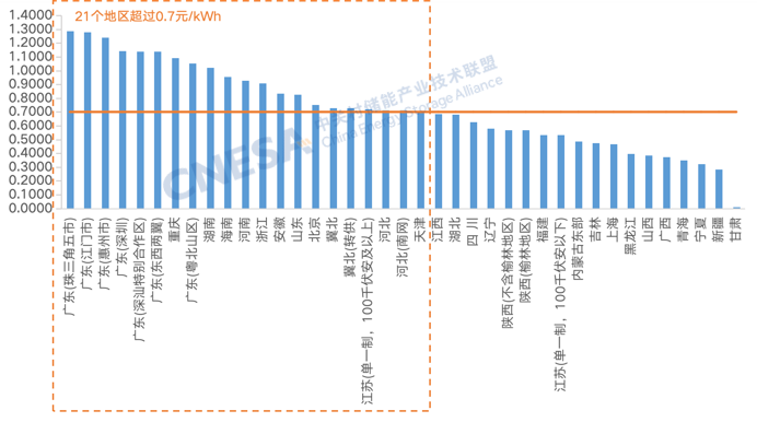 从最大峰谷价差来看,21个省市峰谷价差超0.7元/kWh,9个省市峰谷价差超过1元。广东峰谷价差最大,部分市在1.0元/kWh以上。2025年以来,广东珠三角五市、江门、惠州等地区最大峰谷价差都高于1.0元/kWh,以目前的电价政策测算,广东用户侧储能一年充放电次数可达到600次或以上,用户侧储能“价差套利”收益潜力较高,可能成为用户侧储能的“主战场”。