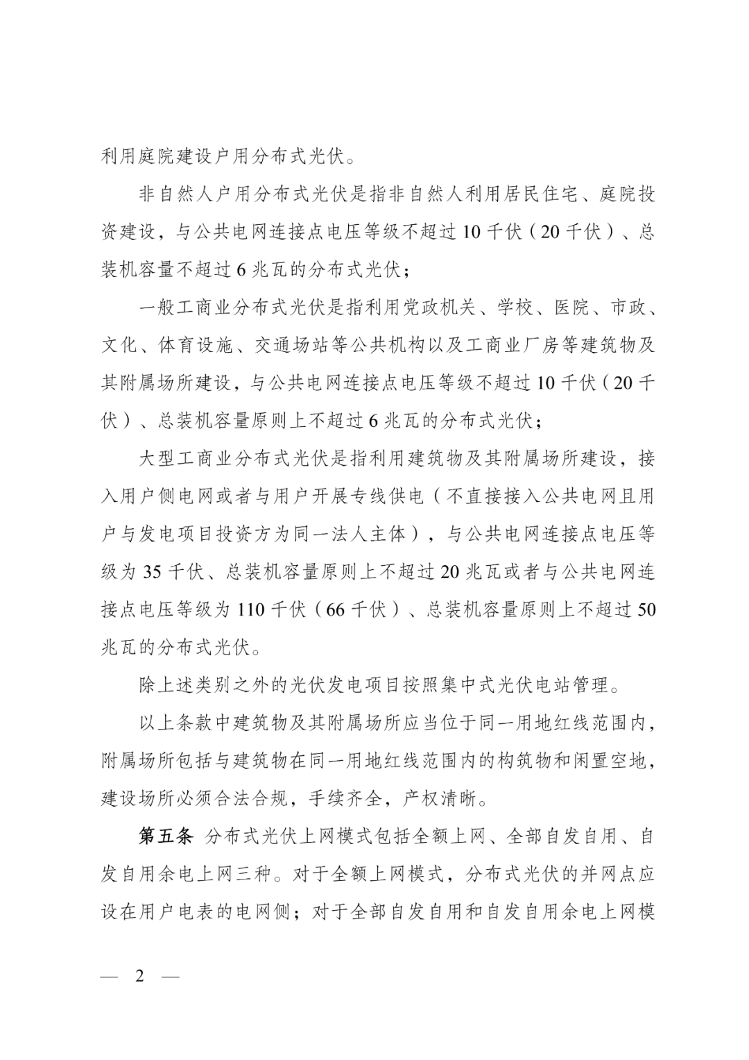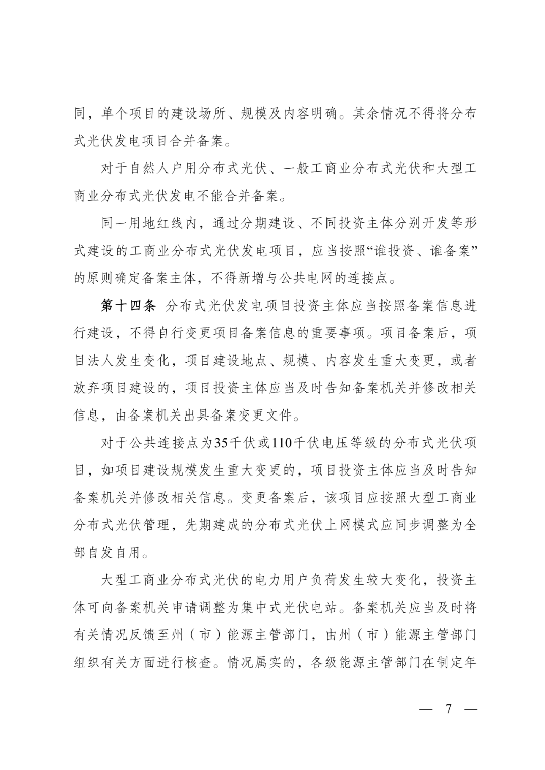 公共连接点为35千伏或110千伏电压等级的分布式光伏项目,如项目建设规模发生重大变更的,变更备案后,应按照大型工商业分布式光伏管理,先期建成的分布式光伏上网模式应同步调整为全部自发自用。