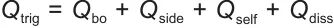 顶部电池的侧面和底面直接受到火焰加热,其火蔓延触发能量由4部分组成,分别为来自底面的传热、来自侧面的传热、自产热、对流辐射散热,如式(3)所示。由于在加热过程中自产热速率极小,且加热持续时间较短,自产热在这个过程中可以忽略不计。顶部电池在火焰的包裹下,通过对流辐射向环境的散热也可忽略不计。
