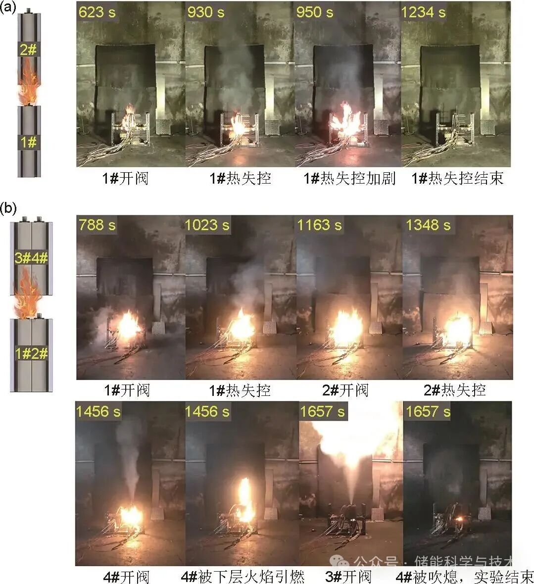 本文亮点:1.针对100Ah磷酸铁锂电池开展双层火蔓延实验,阐明上下模组火蔓延特性,发现上层电池同步火蔓延现象,提出同步火蔓延机理; 2.得到100Ah磷酸铁锂电池火蔓延上层热失控触发能量边界。