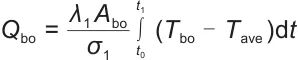 图12为实验3中顶部4#、5#、6#电池的底面温度,其呈现相似的温度变化趋势,因此可以近似认为底部火焰对顶部电池的加热是均匀的,顶部电池的底面积可以确定为加热面积。但火焰对侧面的加热并不均匀,无法确认侧面的加热面积。本工作以4#、5#、6#电池底面温度的平均值近似代表顶部电池底面的平均温度Tbo,如式(4)所示。通过底面的传热量由式(5)计算,结合式(3)可以解耦火蔓延触发能量Qtrig,分别得到顶部电池通过底面和侧面的传热量占比,进一步为储能系统的定向安全防护提供指导思路。