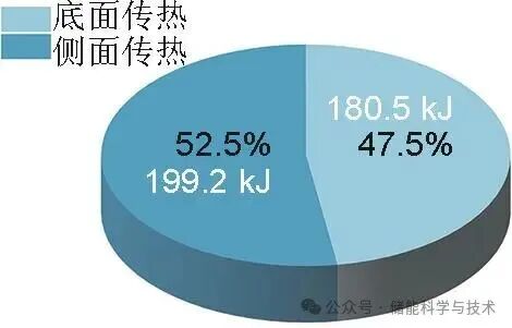 (4)在火蔓延触发过程中,底部3节电池累计传递至顶部电池单体的能量分别为249.1 kJ、334.3 kJ和379.7 kJ。在这些能量中,通过底面传热占比47.5%,通过侧面传热占比52.5%。