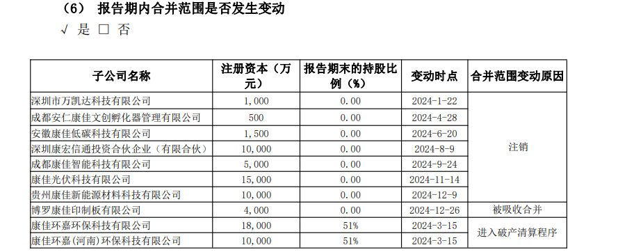 在2024年度报告中,康佳共注销了包括康佳光伏、贵州康佳新能源在内的7家子公司,并表示注销后有利于优化公司资产配置。