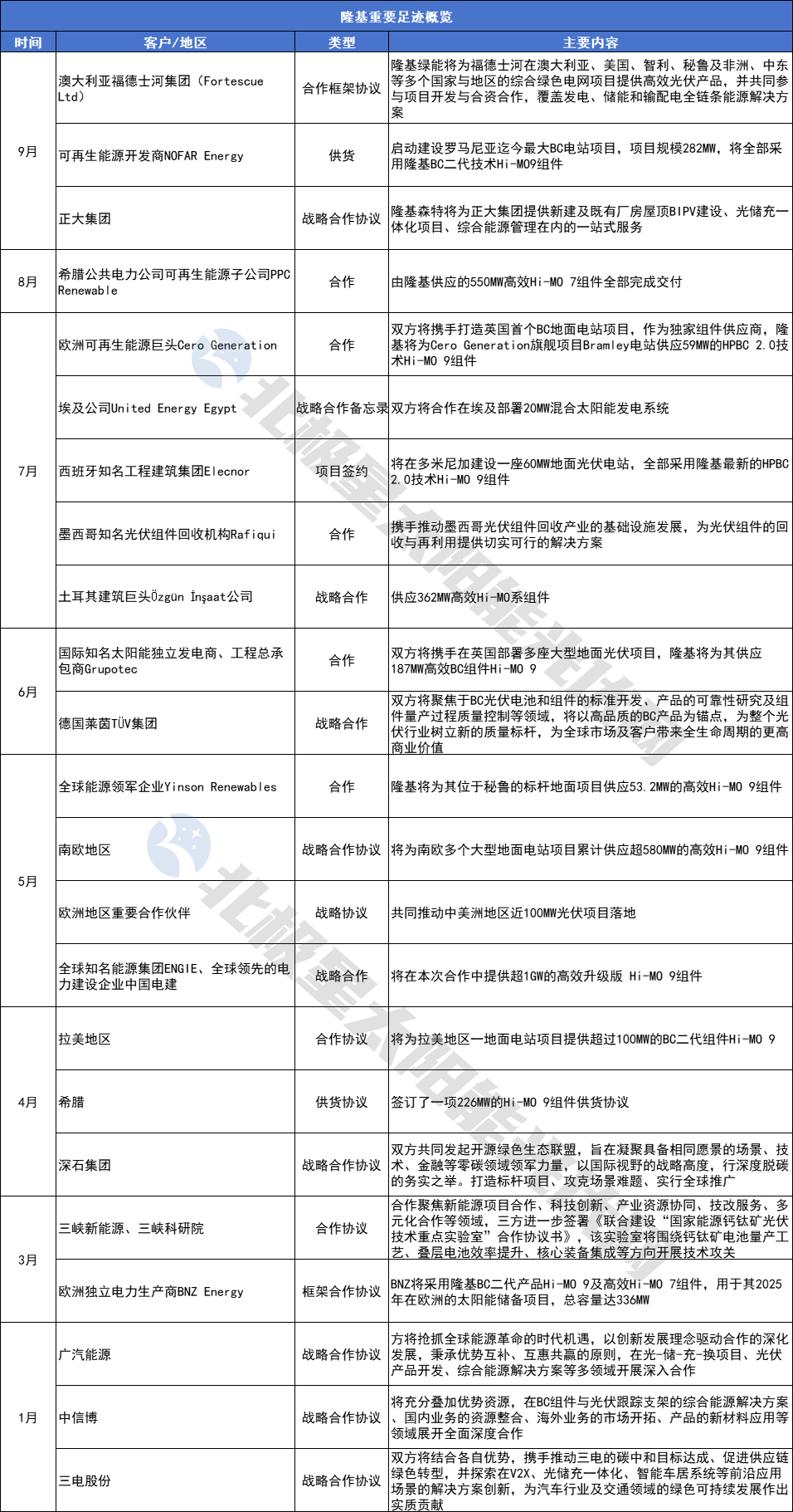 势以BC冲破行业内卷的隆基绿能,提高BC产品的市场份额自然成为重中之重。至今公开的20余份合作协议主要围绕BC产品,项目遍布欧洲、拉美地区等;与此同时,“朋友圈”也继续扩大,与澳大利亚福德士河集团、深石集团、广汽能源、三电股份、中信博等签订战略合作协议。