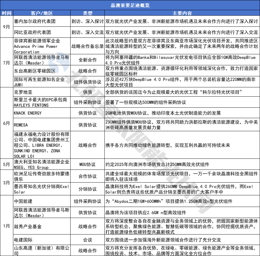 此外,从合作中也可以看出,海外市场可谓“重头戏”。在2025年半年报中,晶科能源指出,凭借前瞻性的全球布局战略,不仅深耕海外传统光伏市场,更敏锐捕捉海外高增长市场,今年上半年实现6成的海外组件出货。