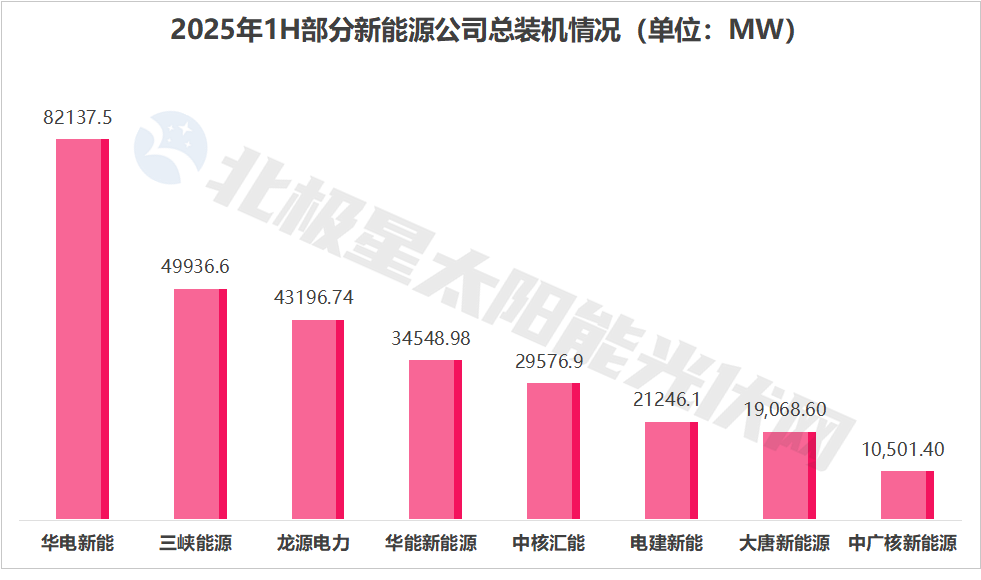 从装机总量来看,华电新能在所有新能源平台中呈现“独一档”存在,其高达82137.5MW,远超其后的三峡能源、龙源电力的49936.6MW和43190.64MW,而后是两个未上市的两家公司,华能新能源权益管理口径装机容量突破36500MW(6月公布数据)中核汇能29576.9MW(2024年度数据),后续依次为电建新能源的21246.1MW(2025年一季度数据)、大唐新能源的19068.6MW,中广核新能源以10501.40MW的装机容量暂列末位。