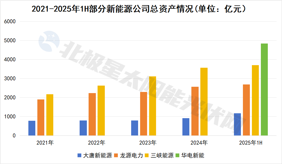 然而,三峡能源的领先局面同样未能长期维持。华电集团为将华电新能打造为新能源旗舰,推动其上市,通过资产注入、引入战略投资者等方式,向华电新能注入大量新能源资源。2024年7月16日,华电新能在上交所主板挂牌上市,上市后市值一度突破3500亿元;根据其最新披露的2024年半年报数据,华电新能总资产已达4839.16亿元,总装机容量更是达到82137.5MW,总资产、装机双双超越三峡能源与龙源电力,成为当前国内新能源发电企业中的新“榜首”。