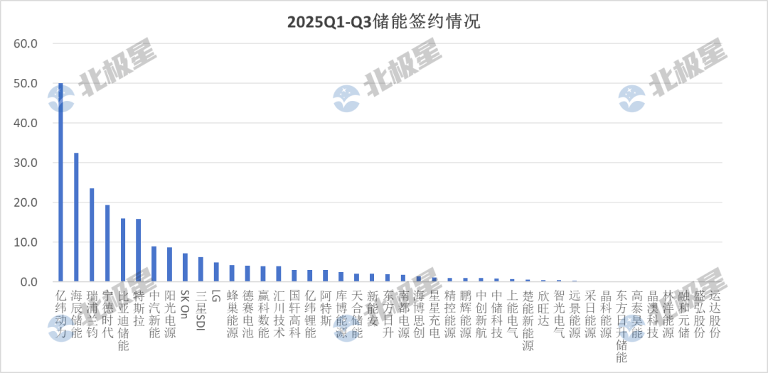 从参与签单的企业来看,头部企业依然持续发力,比如亿纬、海辰储能、瑞浦兰钧的签单总量名列前茅。其次海外储能企业紧追不舍,特斯拉、SK On、三星SDI、以及LG新能源今年签单量均接近10GWh。此外还有不少出海“新势力”取得了亮眼表现。