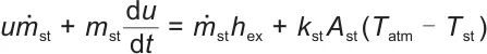 其中,kst为储气室对于外界空气的对流传热系数,取为34.4 W/(m2·K);u为内能。下标atm为外界大气参数,st表示储气室。