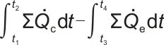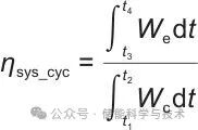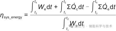 对于系统的充放电循环,需要以全系统循环往返效率来表示这个循环内电能储量被有效保存的程度。对于以t1~t2作为储能过程运行时间,t3~t4作为释能过程运行时间的一个实际充放电循环,不考虑低温导热油㶲