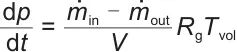 分别表示进入和流出容积的质量流量;Tvol为容积内温度;ρ为容积内气体密度;Rg为通用气体常数,取值为287 J/(kg·K)。
