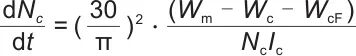 其中,Nc为压缩机转速,r/min;Wm为电机的功率输入,Ic为压缩机转子的转动惯量。WcF为压缩机与电机所连轴系的摩擦功率。各级压缩机同轴且设计转速相同,为1500 r/min。