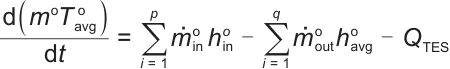其中,A表示有效换热面积;上标o代表导热和蓄热工质;下标avg表示TES内平均值;p为进入TES的流股数;q为流出TES的流股数;QTES表示热量散失。