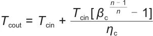 其中,n为绝热指数;压缩比βc为压缩机的出口压力和入口压力的比值;ηc为压缩机的等熵效率。