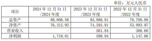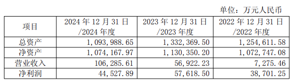 据悉,扬子江金控是扬子江船业于2021年分拆出来的投资业务部门,并于2022年4月在新加坡证券交易所挂牌上市。作为扬子江金控旗下的主要国内投资平台,新扬子商贸对外投资企业达57家,涉及金属、船舶、化工、投资管理等领域。2024年,实现营业收入10.63亿元,同比增长86%,并实现投资收益4.73亿元,当年实现净利润4.45亿元。公司总资产规模较上年有所降低为109.40亿元,同时负债规模同比锐减90%至1.98亿元,资产负债率为1.81%。新扬子商贸近三年主要财务数据如下: